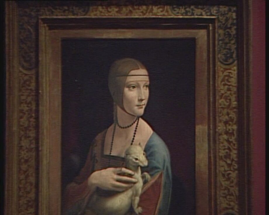 Egy biztos, különleges szépségű fiatal hölgy volt, aki Leonardo képén valóban megörökítésre került és nagyon izgalmas a képen magán ez a különös attributum, ez a hermelin, ahogy szokták nevezni. Ezen is szoktak vitatkozni, hogy hermelin vagy miféle állat. Nyugodtan tekinthetjük hermelinnek és ez fontos is a kép szempontjából. Ilyenkor az ábrázolt lányok vagy hölgyek virágot vagy ékszert szoktak a kezükben tartani, a hermelinnek egy különleges, azt kell mondanom, hogy több szintű jelentése van. Van aki úgy értelmezi, hogy Cecilia Gallerani, gallerani görögül a hermelinnek a neve. A hermelin a tisztaságnak is a jelképe volt, ugyanakkor van még egy fontos, izgalmas erotikus üzenete is a képnek. A hermelin a hercegi kedvesnek, Ludovico Sforza is egyik embléma állata volt, tehát úgy is tekinthetjük, ezt a képet, hogy magát a herceget tarja a kezében és simogatja a fiatal kedves. Tehát Leonardo a maga zsenijével nem pusztán tökéletesen ábrázolt egy jellemet, egy személyiséget, hanem sokféle jelentéssel is ellátta ezt a képét.