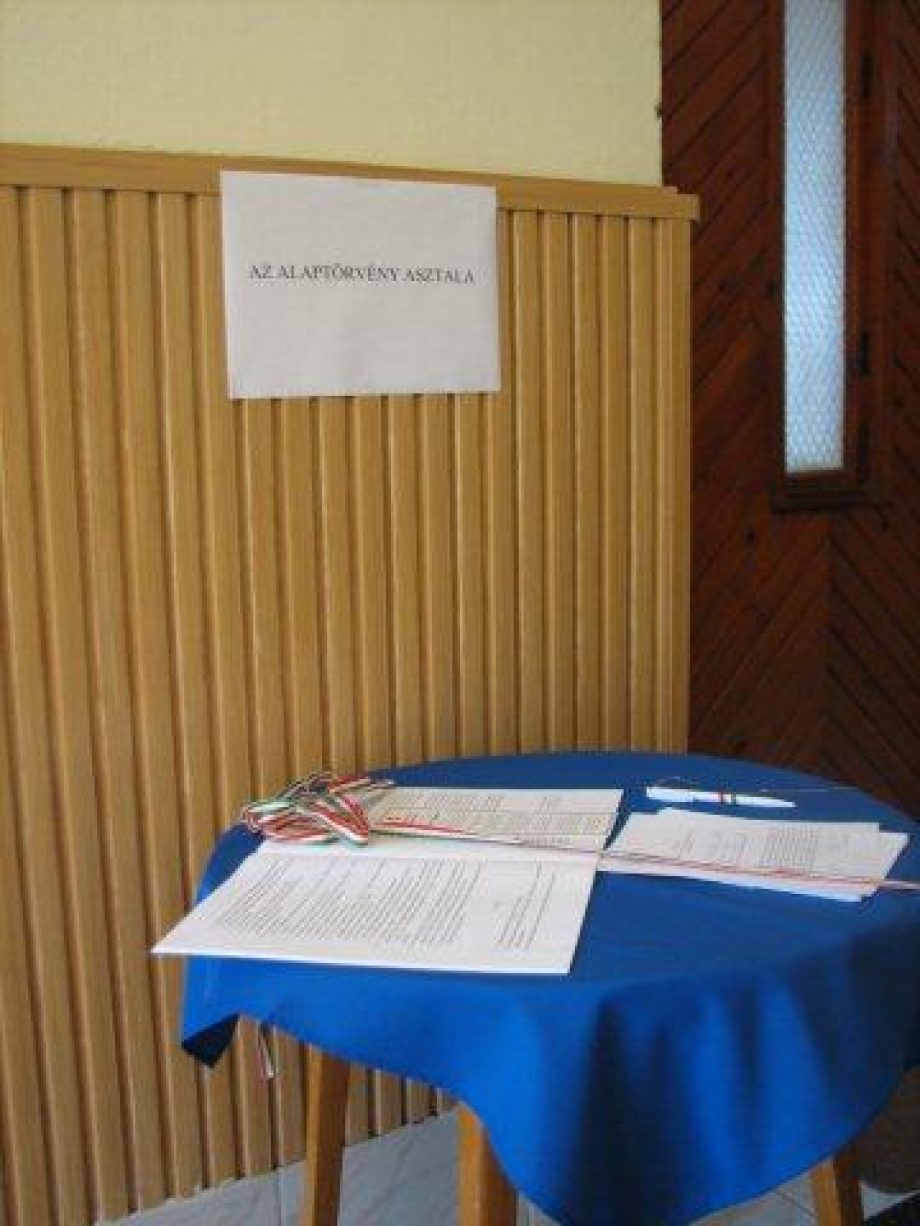 A kormány szeptemberben kérte fel arra az önkormányzatokat, hogy állítsanak fel egy asztalt, ahol az állampolgárok egy adatlap kitöltésével személyre szólóan kérhetik az új alkotmány névre szóló kézbesítését. Ily módon Magyarország új Alaptörvénye bárki számára megismerhető, elérhető, és egyúttal személyre szóló emléktárgy is lehet.