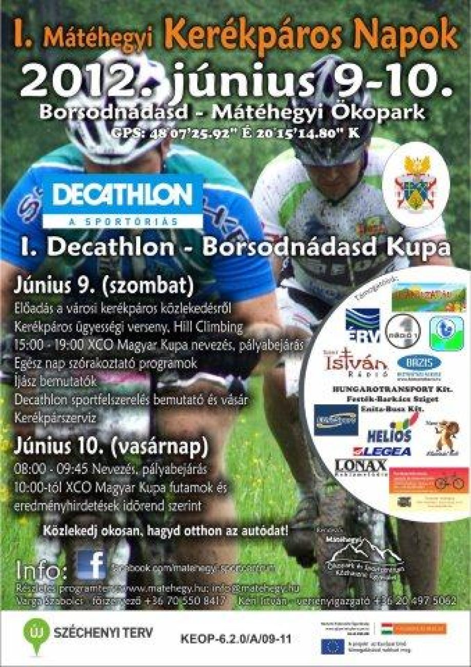 Országos hegyikerékpár versennyel mutatkozik be a Mátéhegyi Ökopark és Sportcentrum Egyesület. A civil szervezetet idén emelte tagjai közé a Magyar Mountain Bike Szakági Szövetség. A Borsodnádasd feletti területen június 10-én rendezik az XCO Magyar Kupa-sorozat idei harmadik futamát, az I. Decathlon – Borsodnádasd Kupát. A versenypályát önkéntesek alakították ki.