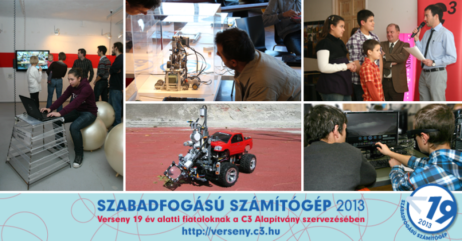 A C3 Kulturális és Kommunikációs Központ idén tizenegyedik alkalommal rendezi meg a Szabadfogású Számítógép versenyt, amelyre számítógéppel készült kreatív, önálló alkotásokkal nevezhetnek 19 év alatti fiatalok.