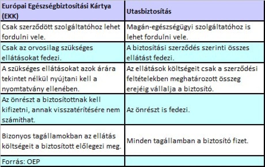 „Pedig mind az uniós egészségkártyát és az utasbiztosítást is fontos magukkal vinniük az utazóknak, vannak ugyanis olyan országok, amelyekben az európai kártya ellenére is ott kell hagynunk némi pénzt az egészségügyi szolgáltatónál” – mondja Vass Gábor, a PBA Praeventio szakmai vezetője. „Ilyen az országonként eltérő nagyságú vizitdíj vagy például Ausztriában a minden vényre kiváltott gyógyszer után a receptdíj. Más esetekben a gyógyszer és egészségügyi szolgáltatás bizonyos százalékát köteles az igénybe vevő megfizetni önrészként”. (Ld. táblázatunkat.) Franciaországban további nehézség lehet a visszatérítéses rendszer: a beteg köteles megelőlegezni az egészségügyi szolgáltatás költségeit, és itthon kérheti a visszatérítést. A két hatóság között gyakran elhúzódó egyeztetést az utasbiztosítással el lehet kerülni.