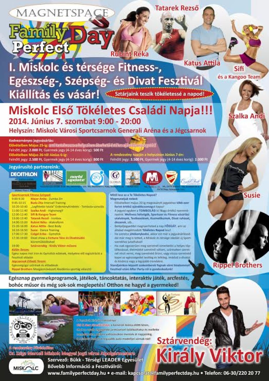 Miskolc és térsége MAGNETSPACE FAMILY PERFECT DAY- Fitness-, Egészség-, Szépség és Divatfesztivál 2014 címmel rendezvényre invitálja a miskolciakat Június 7-én a Sportcsarnokba.
