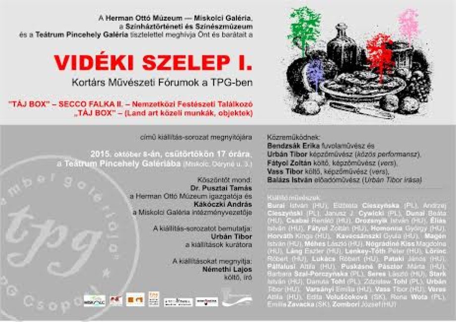 2012-ben tizenhat hazai művész vehetett részt a Secco Falka I. projektben, ahol a kihívást a TPG falaira, a helyszínen való festés jelentette. 2015-ben már 34 alkotó, két csoportban igyekszik megfelelni az újabb tematikus kiírásnak. Az egyik csoport, csak fehér színben (land art közeli munkákat, objekteket) installációkat készít, míg a másik csoport 40×30 cm-es vászonra festi meg elképzeléseit. A szervező (a kisgaléria kurátora) a postán elküldött alkotásokból (művészek nélkül), a TPG újonnan kijelölt falára felragasztva hozza létre a Secco Falka II. Nemzetközi Festészeti Találkozó állandó bemutató helyét. Az alkotóknak, mint minden jóakaratú embernek, „meg kell küzdeniük, szinte öklözniük kell” azért a tájért, amelyet őseiktől örököltek és szeretnének átadni az őket követő generációknak. Erre utal a kicsit pikánsan áthallásos „Táj Box” cím is. A feladatban, a közös gondolati érintés a fontos, mellyel csatlakozhatnak a Föld megmentéséért dolgozó ember-társainkhoz. Az ötletgazda ismét Urbán Tibor képzőművész, aki a Vidéki Szelep I. Kortárs Művészeti Fórumok címszó alatt kiállítás-sorozatot is indít, ahol a csoportos és egyéni bemutatók mellett performanszok, zenei és irodalmi megnyilvánulások is szerepet kapnak.