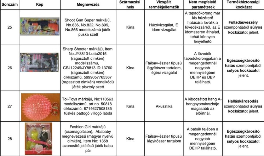 Nem megfelelt termékek: http://www.nfh.hu/sites/default/files/jatekok_nemmegfelelt_2015.pdf
