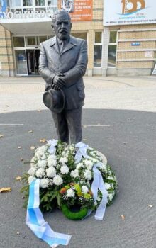 „1925. október 26-ot írtak, reggel 6 óra 10 perckor hatalmasat rázkódott a Debreceni útfél mentén álló fúrótorony, s a forró víz megállíthatatlannak tűnve szökött a magasba. A helyiek csodaforrásnak nevezték el. A felfelé nyomuló földgáz hozta magával az 1090,87 m mélységből a 73 °C-os folyékony kincset, s a csillogó, aranybarna, illatos víz elárasztotta a környékbeli gödröket. Megnyitotta az elmaradott alföldi mezőváros történetének fényes fejezetét.”- így emlékeztek ma vissza a gyógyfürdőben zajló ünnepi eseményen a 100 évvel ezelőtt történtekre, és Dr. Pávai Vajna Ferenc főgeológusra, a hajdúszoboszlói gyógyfürdő előtt felállított szobránál.
