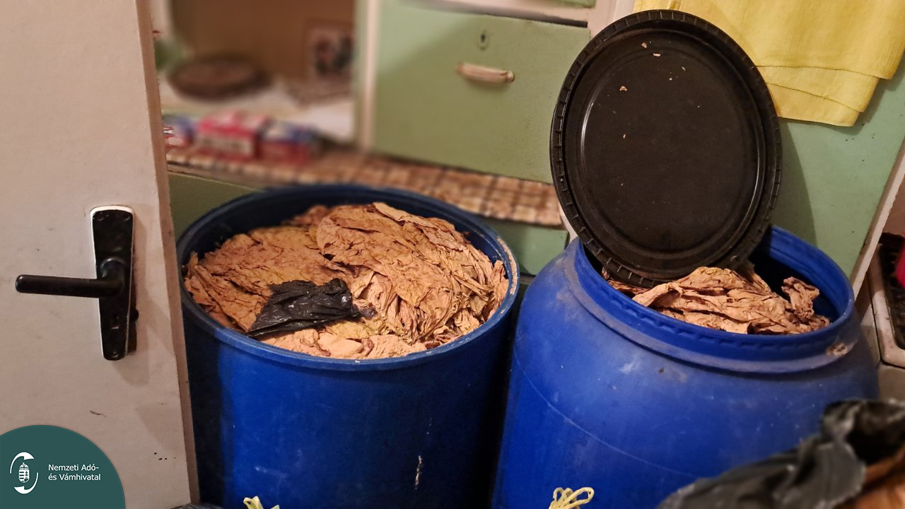 A Nemzeti Adó- és Vámhivatal (NAV) Bevetési Igazgatóságának pénzügyőrei egy 61 éves nyírségi nő portáján 674 kilogramm szárított dohánylevelet foglaltak le. A nő azt állította, hogy elveszett a bejárati ajtó kulcsa, de az intézkedést ez nem állította meg, mert kiderült, hogy valójában a villanyóra szekrényben volt. A pénzügyőrök egy szabolcsi község családi házánál ellenőriztek, miután felmerült a gyanú, hogy az ingatlanon adózatlan dohányterméket tárolnak. A tulajdonos elismerte, hogy szárított dohánylevelet tart a házban, de hozzátette: „a bejárati ajtó kulcsa sajnos elveszett”. Miután a nő átvette a helyiségellenőrzésről szóló végzést, kinyitotta a kaput, és beengedte a pénzügyőröket. Az egyenruhások rövid idő alatt megtalálták a hiányzó kulcsok egy részét az udvaron, majd átvizsgálták a szobákat, a konyhát és a kamrát is. Kiderült, hogy az épület lakatlan, de korántsem üres. Hatalmas zsákok, műanyag hordók és ipari méretű kartondobozok sorakoztak mindenhol, tele szárított dohánylevéllel. A nő a feketepiaci áru tulajdonjogát elismerte, de eredetét nem tudta igazolni. Az egyenruhások összesen 674,3 kilogramm szárított dohánylevelet foglaltak le tőle. Jövedéki törvénysértés és jövedékkel való visszaélés elősegítése bűncselekmény miatt indult eljárás, amiért az elkövető akár 70 millió forint bírságra is számíthat.Fontos! Dohánytermék Magyarországon kizárólag dohányboltban értékesíthető. Felhívjuk a figyelmet, hogy dohánytermék csak a NAV által nyilvántartásba vett, regisztrációra kötelezettek között értékesíthető és adható közvetlenül. A dohánylevél munkavégzés ellenértékeként sem adható át. Nemzeti Adó- és Vámhivatal Bevetési Igazgatósága