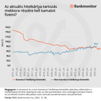 Októberben ugyanis a kamatmentes időszakban lévő tartozások összege meghaladta a kamatozó tartozás nagyságát. Előbbi 80,8 milliárd forint, utóbbi pedig 78,8 milliárd forint volt az ősz második hónapjában. Tehát nagyjából ez a két tartozás azonos szinten van, a kamatmentes tartozás nagysága még magasabb is.